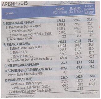 Kementerian Keuangan telah menyusun proyeksi realisasi Anggaran Pendapatan dan Belanja Negara Perubahan (APBN-P) 2015 sampai dengan akhir tahun. Mengacu skenario terburuk, realisasi penerimaan pajak hingga akhir 2015 sekitar 92,7 persen dari target atau kurang dari Rp 120 triliun dari target.
