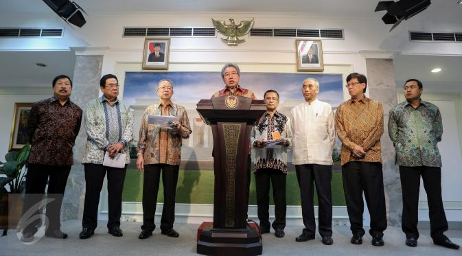 Menteri Perindustrian Saleh Husin memberikan keterangan pers pers di Istana Merdeka, Jakarta, Selasa (13/10/2015). Pemerintah akan mempertimbangkan usulan Gaikindo untuk mengurangi tarif Pajak Penjualan Barang Mewah.