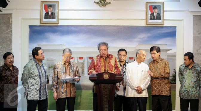 Ketua Gaikindo, Jongkie D Sugiarto memberikan keterangan pers pers usai bertemu presiden di Istana Merdeka, Jakarta, Selasa (13/10/2015). Gaikindo meminta Pemerintah untuk mengurangi tarif Pajak Penjualan Barang Mewah.