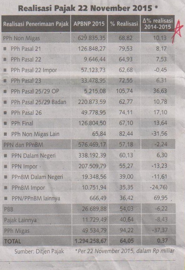 Reinventing policy dan kebijakan revaluasi aset juga akan menambah penerimaan minimal Rp 125 triliun. “Kita targetkan lebih dari itu,” ujar Mardiasmo, Jumat (4/12). Untuk memastikan target tidak meleset terlalu jauh, Mardias-mo akan berkantor di Ditjen Pajak. Realisasi pajak 2015 akan menjadi gambaran target rasional 2016 dan menjadi dasar APBN Perubahan 2016 Dengan tambahan itu, Dirjen Anggaran Kemkeu Askolani berharap, defisit APBN-P 2015 tidak lebih dari 2,7% PDB. Pemerintah sendiri, belum bisa memastikan berapa besar defisit yang terjadi. Yang pasti, Askolani mengakui, defisit tahun ini akan ditambal dari saldo akhir lebih (SAL) akibat bujet belanja pemerintah tak semua terpakai.