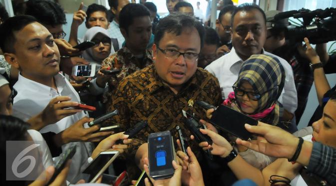 Menkeu, Bambang Brodjonegoro memberikan keterangan kepada awak media usai memberikan keterangan resmi terkait penerimaan pajak tahun 2015 di Direktorat Pajak, Jakarta Senin, (11/1).