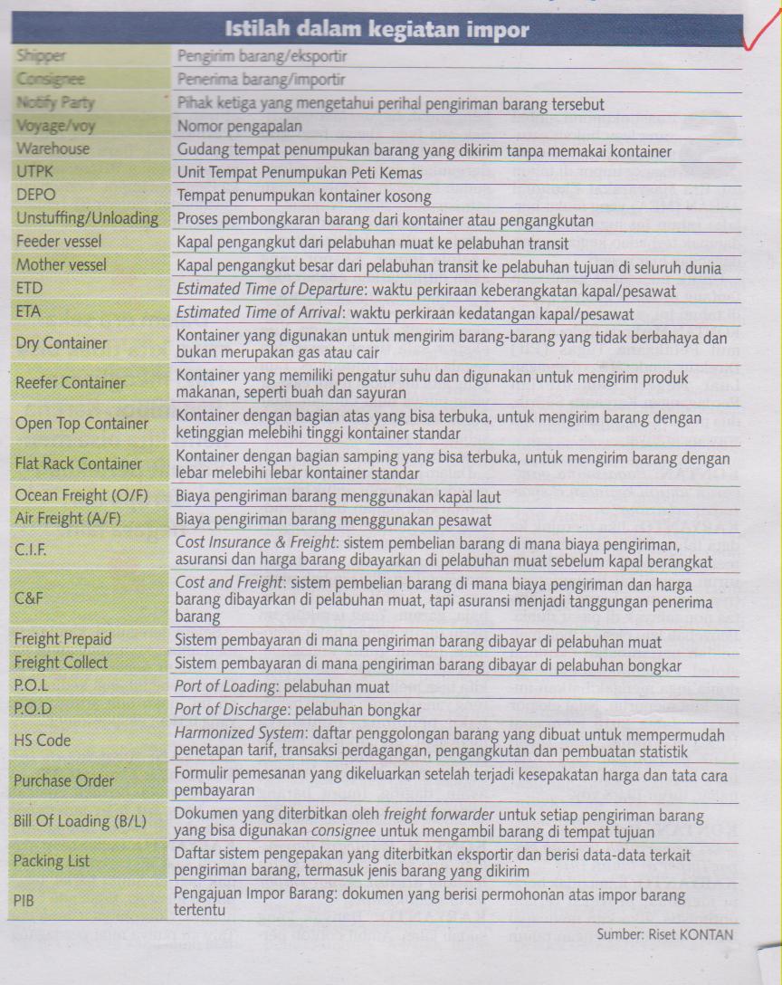 Pahami juga proses melakukan impor. Ada beberapa dokumen yang pasti dibutuhkan saat melakukan impor. Ada banyak dokumen yang dibutuhkan dalam proses impor, misalnya dokumen bill of loading(B/L), packing list, dan dokumen Pengajuan Impor Barang atau PIB (lihat tabel).