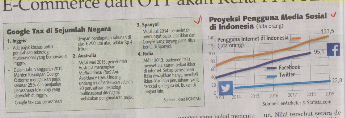 Namun, Lis Sutjiati, Staf Khusus Menteri Kominfo, mengungkapkan kepada KONTAN, besaran pajak bagi pelaku e-commerce dan OTT berpendapatan Rp 10 miliar ke bawah akan sama dengan pajak usaha mikro, kecil dan menengah (UMKM) yang kini 1% dari omzet.