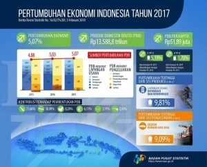 Alhamdulillah, ekonomi tahun 2017 lolos dari lubang jarum. Badan Pusat Statistik (BPS) mencatat, ekonomi Indonesia sepanjang tahun lalu tumbuh 5,07%.
