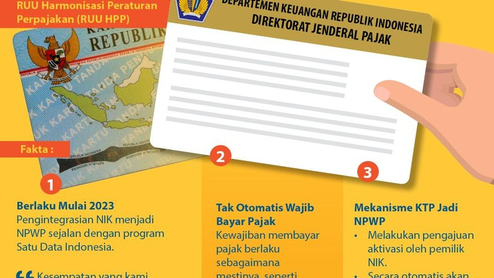 Pemberlakuan NIK menjadi NPWP didasarkan pada ketentuan Pasal 2 ayat (1a) Undang-Undang Nomor 7 Tahun 2021 tentang Harmonisasi Peraturan Perpajakan (HPP), bahwa Nomor Pokok Wajib Pajak bagi Wajib Pajak orang pribadi yang merupakan penduduk Indonesia menggunakan Nomor Induk Kependudukan (NIK). Pemberlakuan ketentuan ini ditujukan dalam rangka penyederhanaan dan kemudahan wajib pajak, serta berlaku mulai 2023.